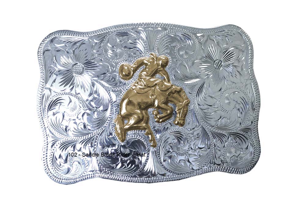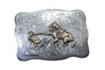 Sterling silver, hand-engraved buckle measures 3.25″ x 2.25″. 20 different figures to choose from.