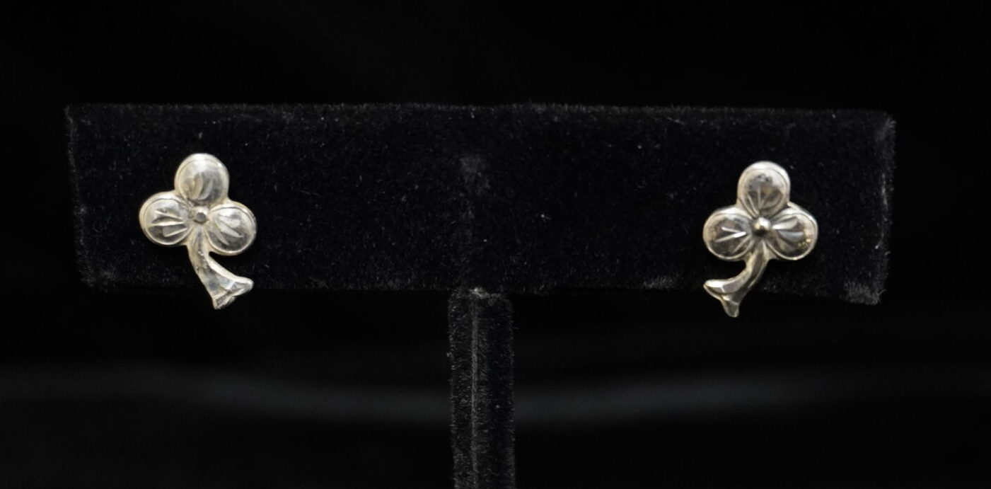 Elevate your jewelry collection with the Sterling Silver hand-engraved small Shamrock earrings by Fleming Silver—a testament to exquisite craftsmanship, timeless design, and enduring beauty.