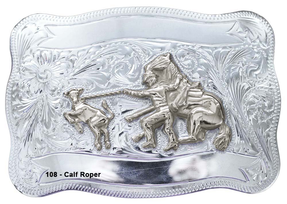 Trophy Buckle in Sterling Silver and hand-engraved with polished ribbons for engraving, measuring 3.5″ x 2.5″