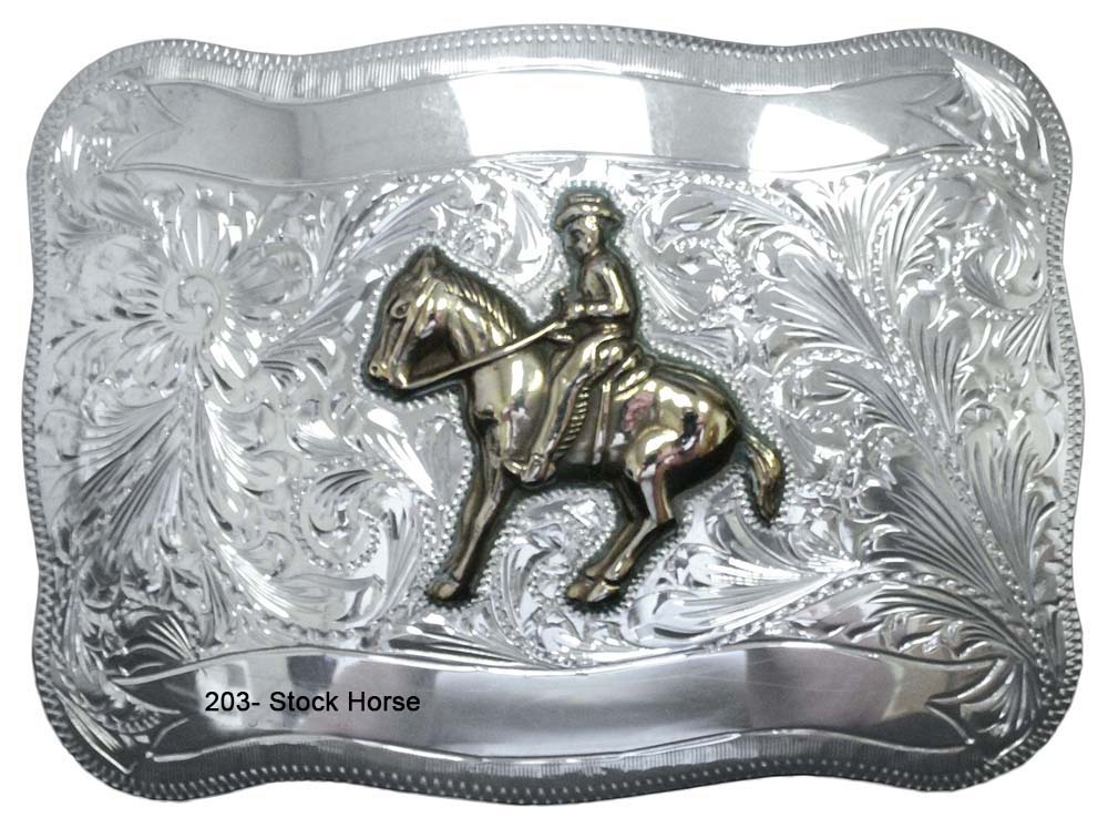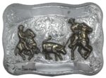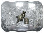 Western Trophy Buckle in Sterling Silver with polished ribbons for engraving and measuring 3.5″ x 2.5″