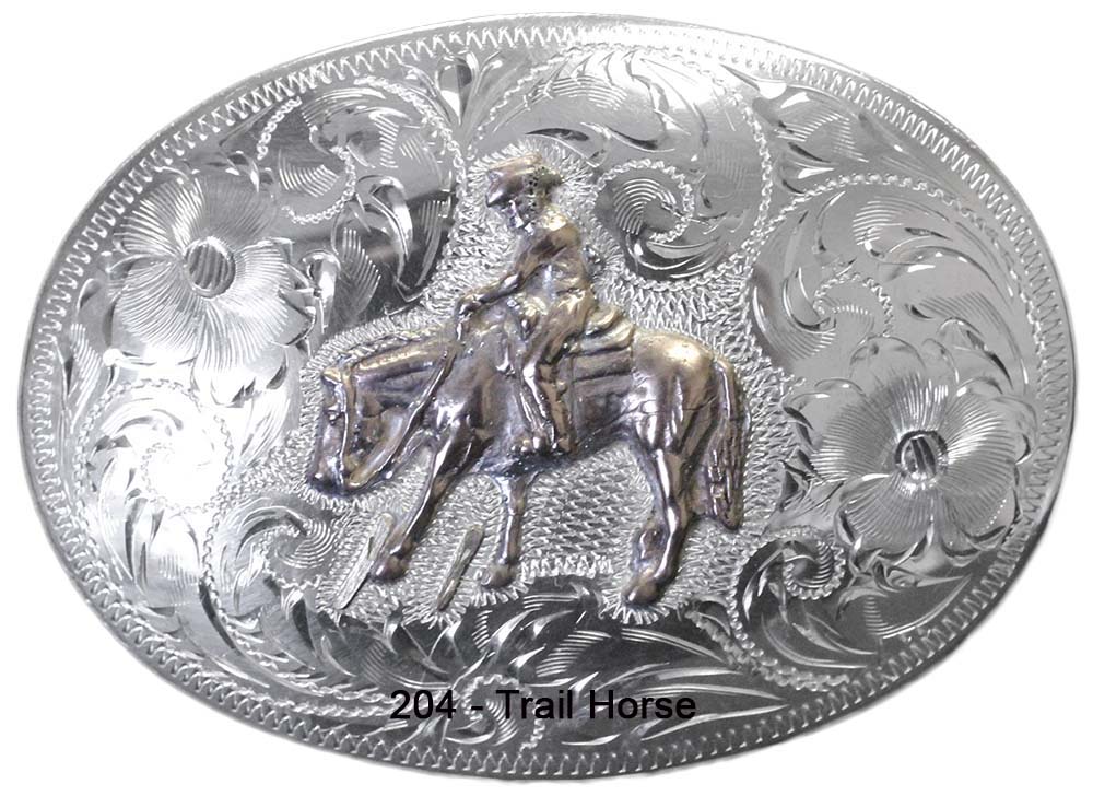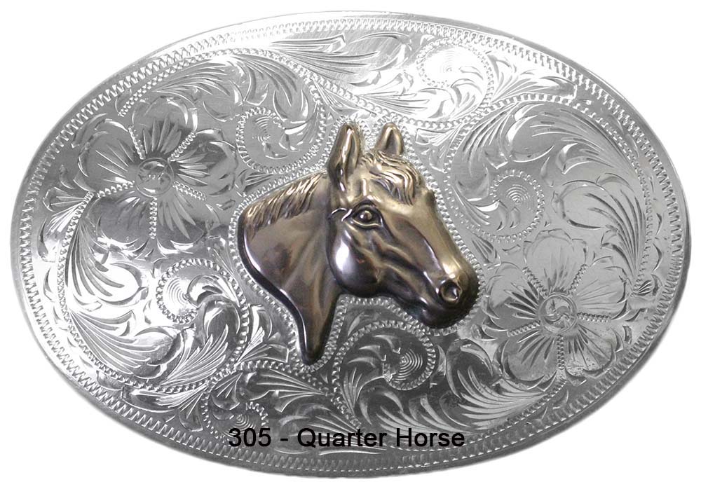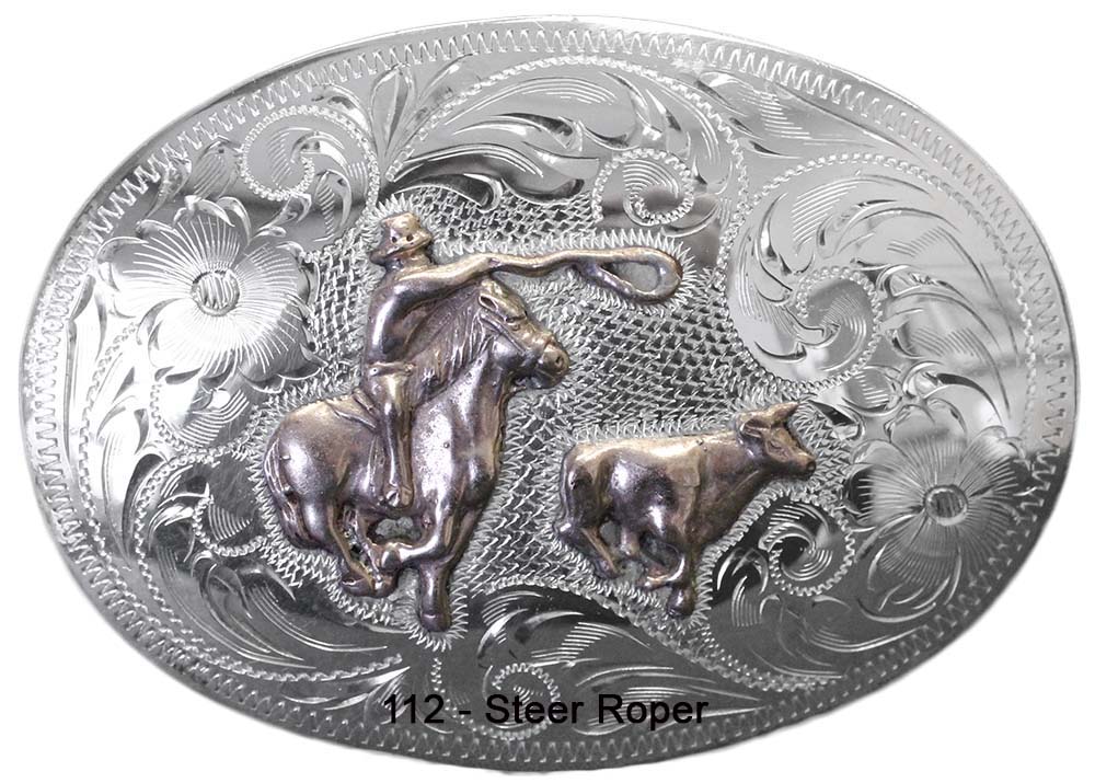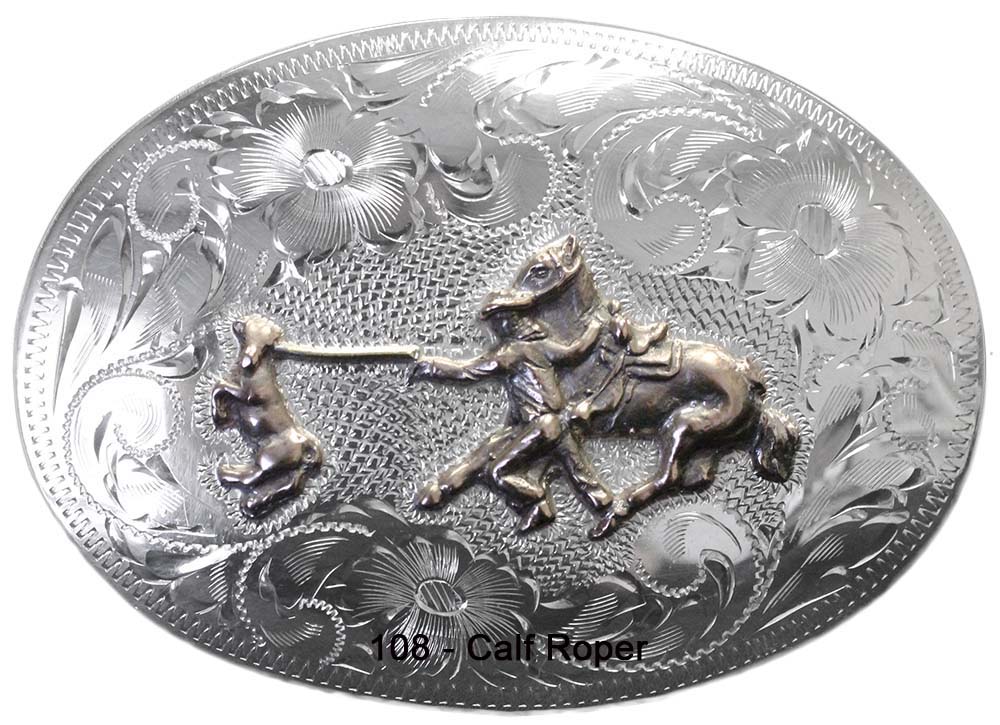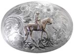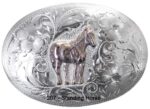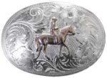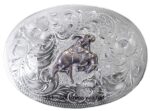 Oval Western Buckle, hand-engraved, sterling silver and measuring 3.5″ x 2.5″