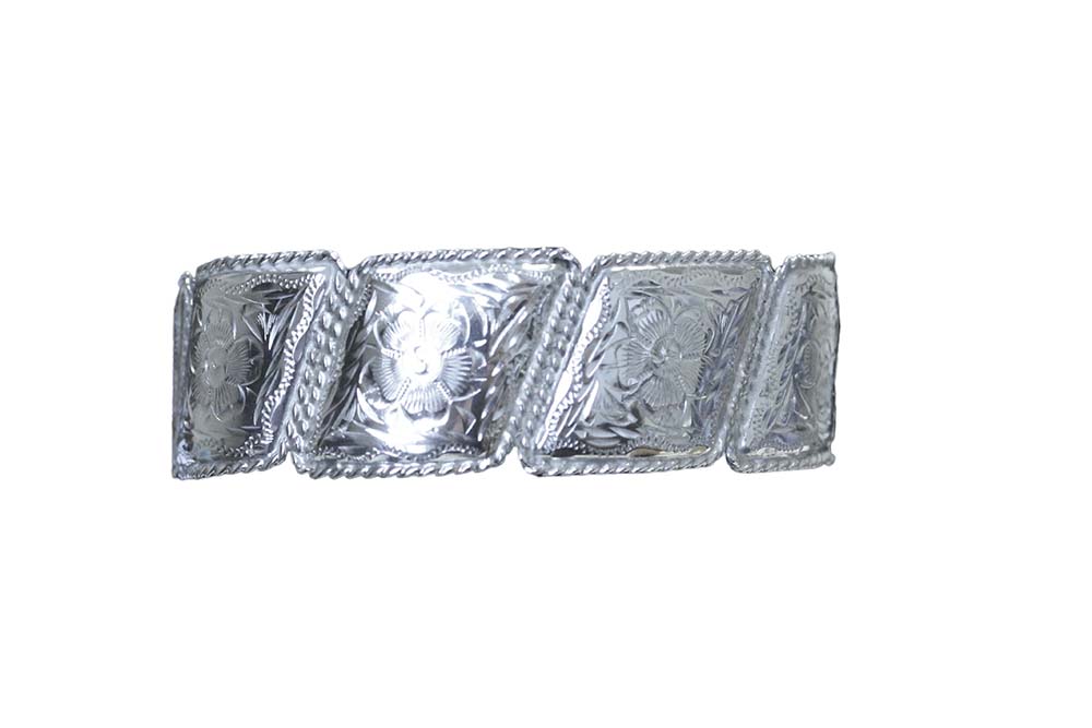 Linked Concho Bracelet of sterling silver overlay measuring 1.25″ wide